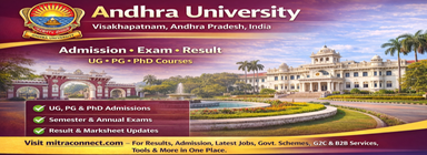 Students are advised to regularly visit the official Andhra University website and MITRACONNECT.COM for the latest updates on admissions, exam forms, timetables, results, supplementary examinations, and re-evaluation notifications.