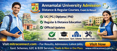 Students are advised to regularly visit the official Annamalai University website and MITRACONNECT.COM for the latest verified updates regarding admissions, examinations, results, distance education notices, and re-evaluation forms.