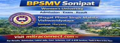 Aspirants are advised to regularly visit the official Bhagat Phool Singh Mahila Vishwavidyalaya website and MITRACONNECT.COM for the latest updates on admissions, exam forms, timetables, hall tickets, results, supplementary examinations, and re-evaluation notifications.