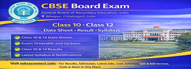 Students and parents are advised to regularly visit the official Central Board of Secondary Education (CBSE) website and MITRACONNECT.COM for the latest updates on exam forms, date sheets, admit cards, results, compartment exams, and re-evaluation notifications.