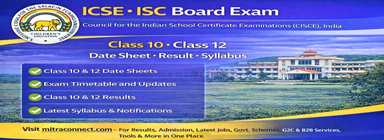 Students and parents are advised to regularly visit the official Council for the Indian School Certificate Examinations (CISCE) website and MITRACONNECT.COM for the latest updates on exam forms, date sheets, admit cards, results, compartment examinations, and re-evaluation notifications.