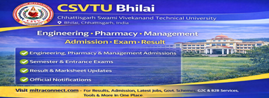 Candidates are advised to regularly visit the official Chhattisgarh Swami Vivekananda Technical University website and MITRACONNECT.COM for the latest updates on admissions, counseling schedules, exam timetables, results, supplementary examinations, and re-evaluation notifications.
