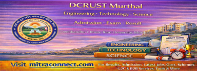 Candidates are advised to regularly visit the official Deenbandhu Chhotu Ram University of Science and Technology website and MITRACONNECT.COM for the latest updates on admissions, counseling schedules, exam timetables, hall tickets, results, supplementary examinations, and re-evaluation notices.