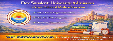 Dev Sanskriti University is known for its unique blend of education, yoga, spirituality, and character building, making it ideal for students seeking holistic and value-oriented higher education. Students should regularly check the official DSVV website and MITRACONNECT.COM for the latest verified updates.