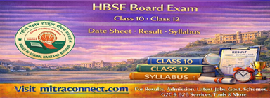 Students and parents are advised to regularly visit the official Board of School Education, Haryana website and MITRACONNECT.COM for the latest updates on exam forms, date sheets, admit cards, results, supplementary examinations, and re-evaluation notifications.