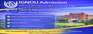 Learners are advised to regularly visit the official Indira Gandhi National Open University (IGNOU) website and MITRACONNECT.COM for the latest updates on admissions, exam forms, timetables, hall tickets, results, re-evaluation, and academic notifications.